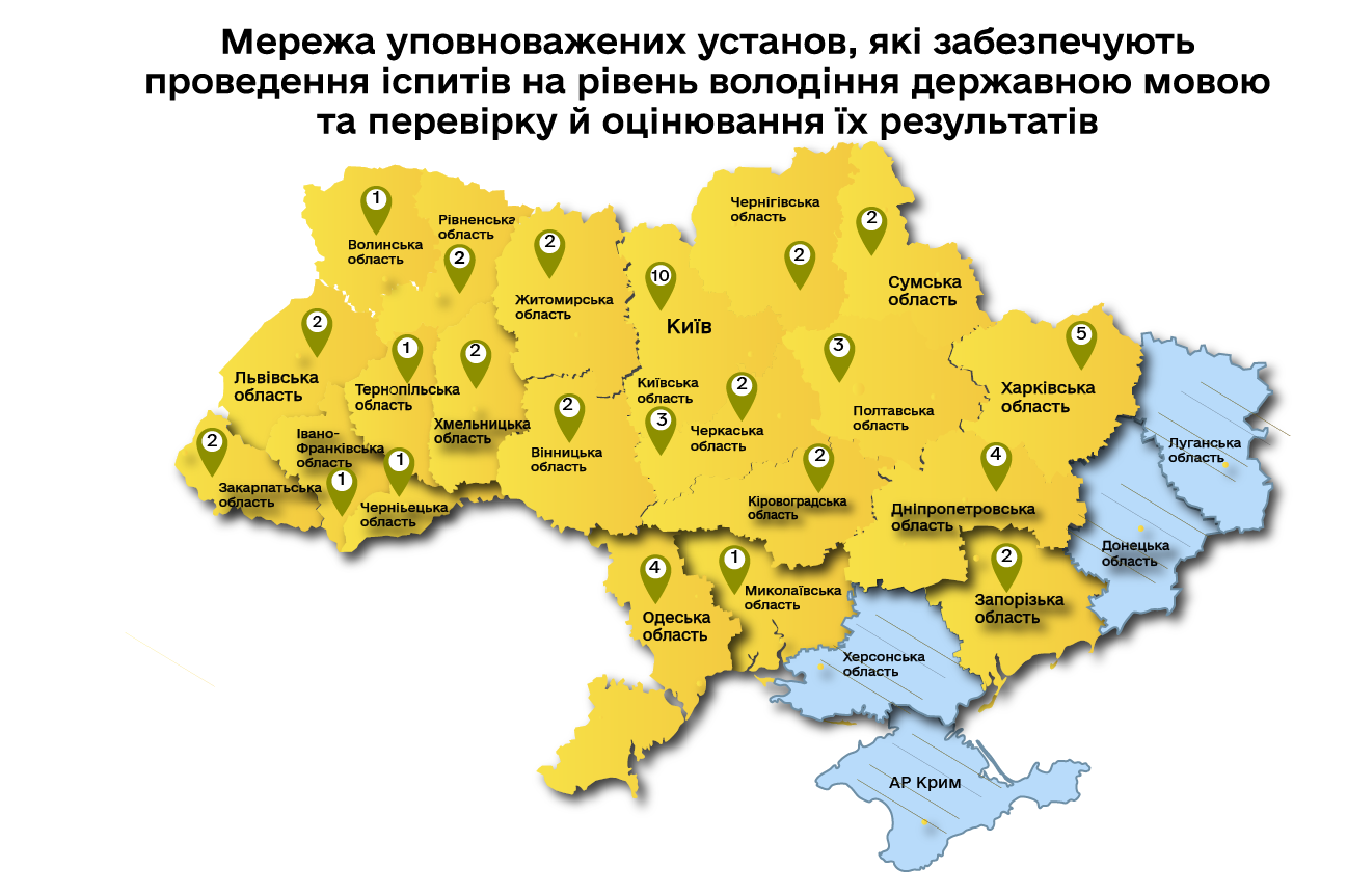 Уповноважені установи, які забезпечують проведення іспитів на рівень володіння державною мовою та перевірку й оцінювання їх результатів